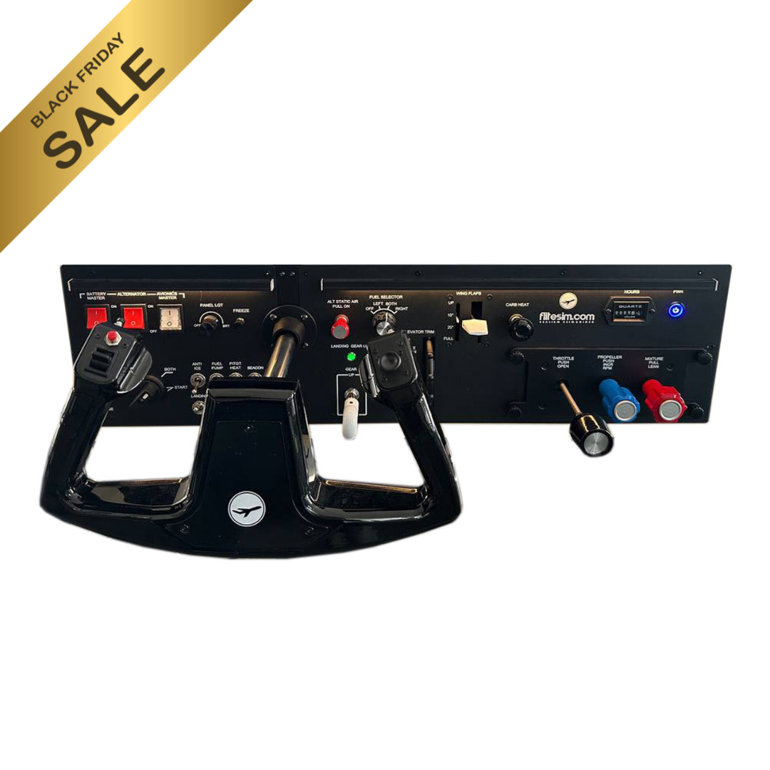 Black Friday Sale Categories: All Black Friday Sale Force Feedback Devices Flight Consoles Throttle Quadrants Motion Platform Accessories Pre-Order Items All / PRE-ORDER Batch #3: (50% Down Payment) CLS Force Feedback Rudder Pedals $849.50 120N Upgrade Kit (U.S. Addresses Only) Sale Price: $399.00 Original Price: $599.00 Sale FliteSim.com G1000 Suite (PFD, MFD & Audio Panel) from $2,795.00 Sale CLS-60 Force Feedback Yoke (NEW) - Removable Mounting Tabs from $799.00 Sale CLS-60 Force Feedback Yoke (Europe & UK Addresses Only) Sale Price: $749.00 Original Price: $999.00 Sale CLS-120 Force Feedback Yoke (NEW) - Removable Mounting Tabs from $1,199.00 Sale CLS-120 (FO Edition) Force Feedback Yoke (NEW) - Removable Mounting Tabs (U.S. Addresses Only) Sale Price: $1,199.00 Original Price: $1,399.00 Sale FC-50 Flight Console ONLY (CLS-60/120 Yoke NOT INCLUDED) Sale Price: $1,995.00 Original Price: $2,795.00 Sale FC-50 Flight Console & CLS-60/120 Force Feedback Yoke Bundle from $2,694.00 Sale FC-50 Flight Console PRO Bundle from $6,184.00 Sale FC-100 Flight Console ONLY (CLS-60/120 NOT INCLUDED) Sale Price: $2,895.00 Original Price: $3,695.00 Sale FC-100 Flight Console & CLS-120 Force Feedback Yoke Bundle Sale Price: $3,894.00 Original Price: $4,494.00 Sale FC-100 Flight Console PRO Bundle Sale Price: $7,184.00 Original Price: $8,184.00 Sale